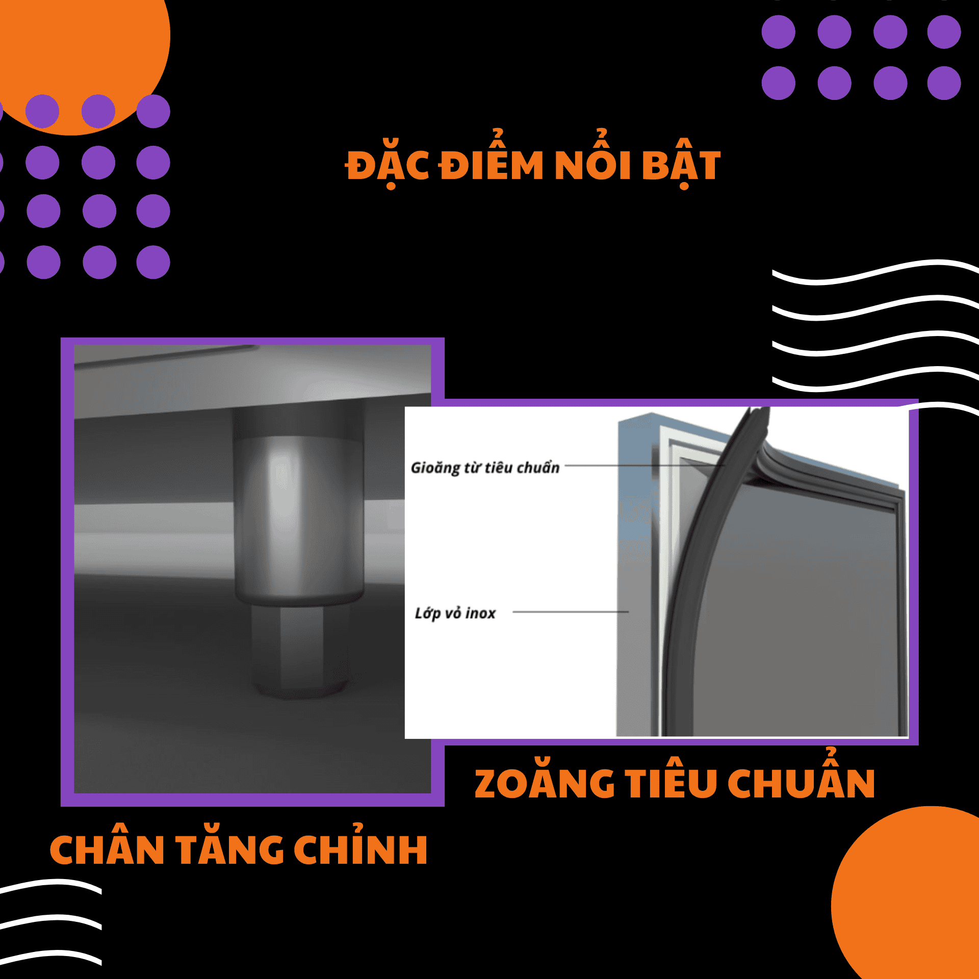 - Chân tăng chỉnh inox chịu lực cho phép điều chỉnh linh hoạt chiều cao của tủ, cố định vị trí chắc chắn, tránh xô lệch khi thao tác liên tục.